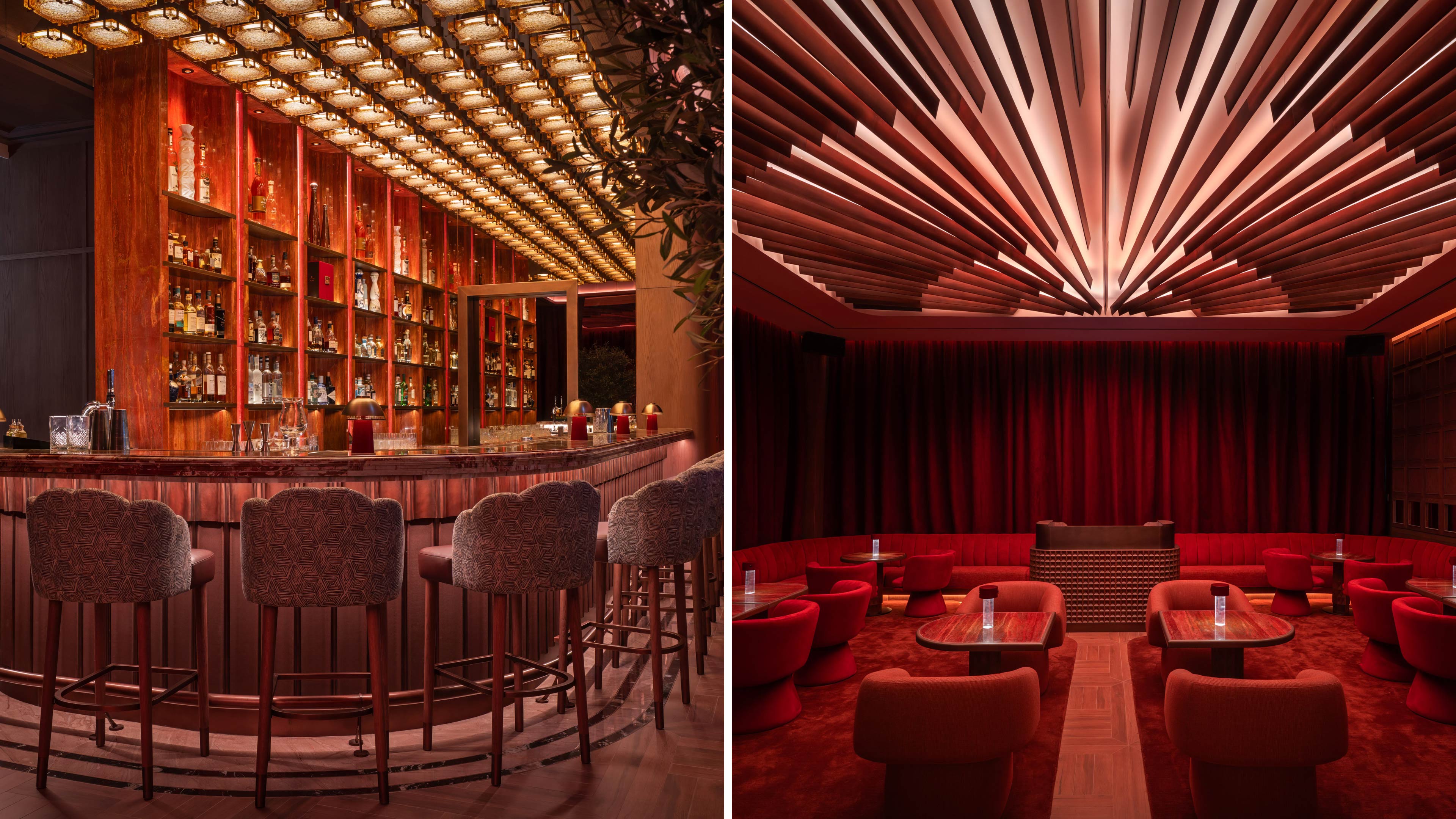 Artistic shapes, soft velvet fabrics, and patterned floors combine to create a space that's fun yet sophisticated, old-fashioned in style but not outdated, and full of evening atmosphere and energy. The lounge captures the feeling of Italian nightlife: elegant, creative, and impossible to resist.